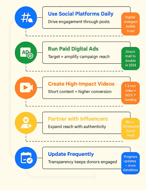 Social platforms are the lifeblood of modern crowdfunding campaigns. Use targeted posts, hashtags, and stories to engage your audience in real time. Consistent updates maintain momentum, while cross-promotion across multiple platforms broadens your reach. Incorporating Digital Engagement, such as emphasizing social media interactions, fosters trust and connection with your audience.