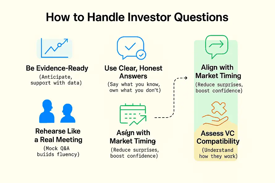 Beyond answering investor questions, founders should prepare thoughtful questions to ask VCs during the meeting. This approach transforms the conversation into a two-way dialogue, allowing you to evaluate the investor’s motivations, value-add, and long-term support. Strategic questioning demonstrates your commitment to building a strong partnership and helps clarify whether the VC’s approach aligns with your company’s goals.