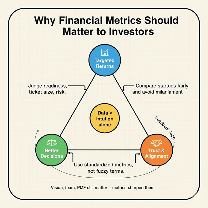 Vision, team quality, and product market fit remain critical, but data grounded investment decisions often outperform those driven by intuition. Financial metrics provide objective, quantifiable indicators of a startup's traction, efficiency, risk profile, and capacity to scale with new capital.