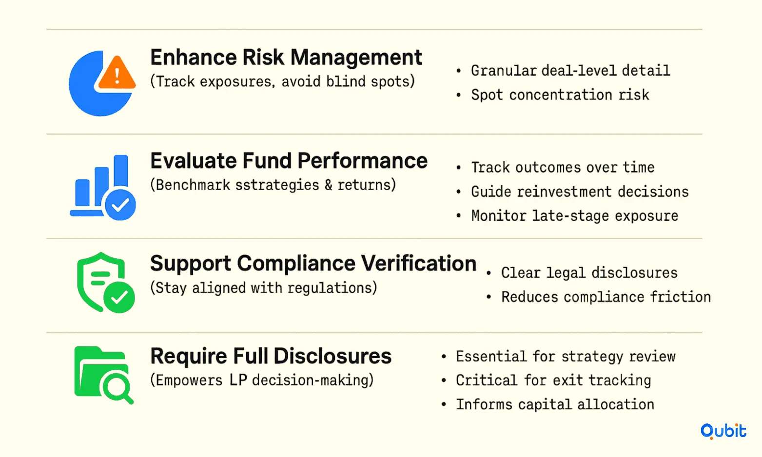 - Detailed PCAP data improves LP risk management by exposing concentration, exposure, and follow-on investment patterns.