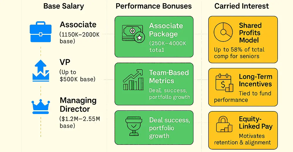 Let’s explore how salaries, bonuses, and carry form the backbone of private equity compensation.